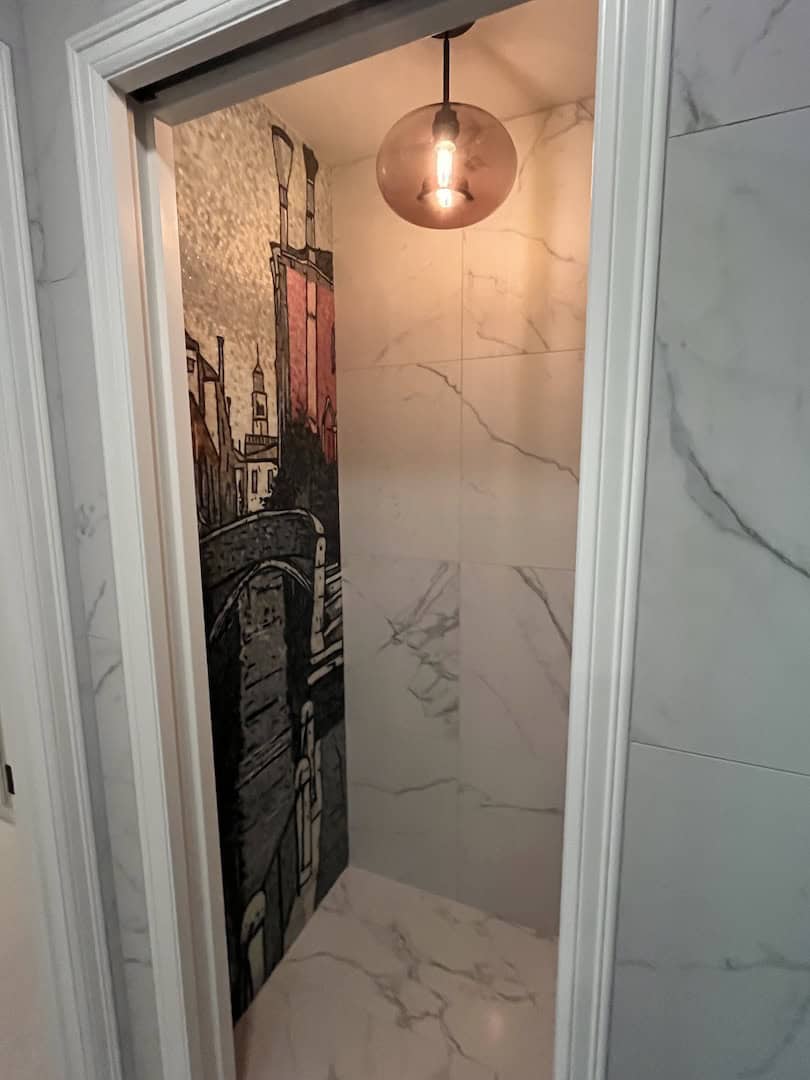 A Canal Story: Bespoke Venetian-Inspired Mosaic Mural for a Bathroom Closet in Washington