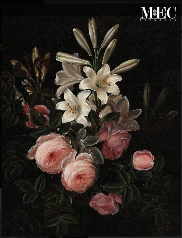 - Earthy Neutrals and Subtle Greens for the background and foliage: These tones provided natural grounding and balance, allowing the central floral elements to stand out while maintaining an overall softness and cohesion.