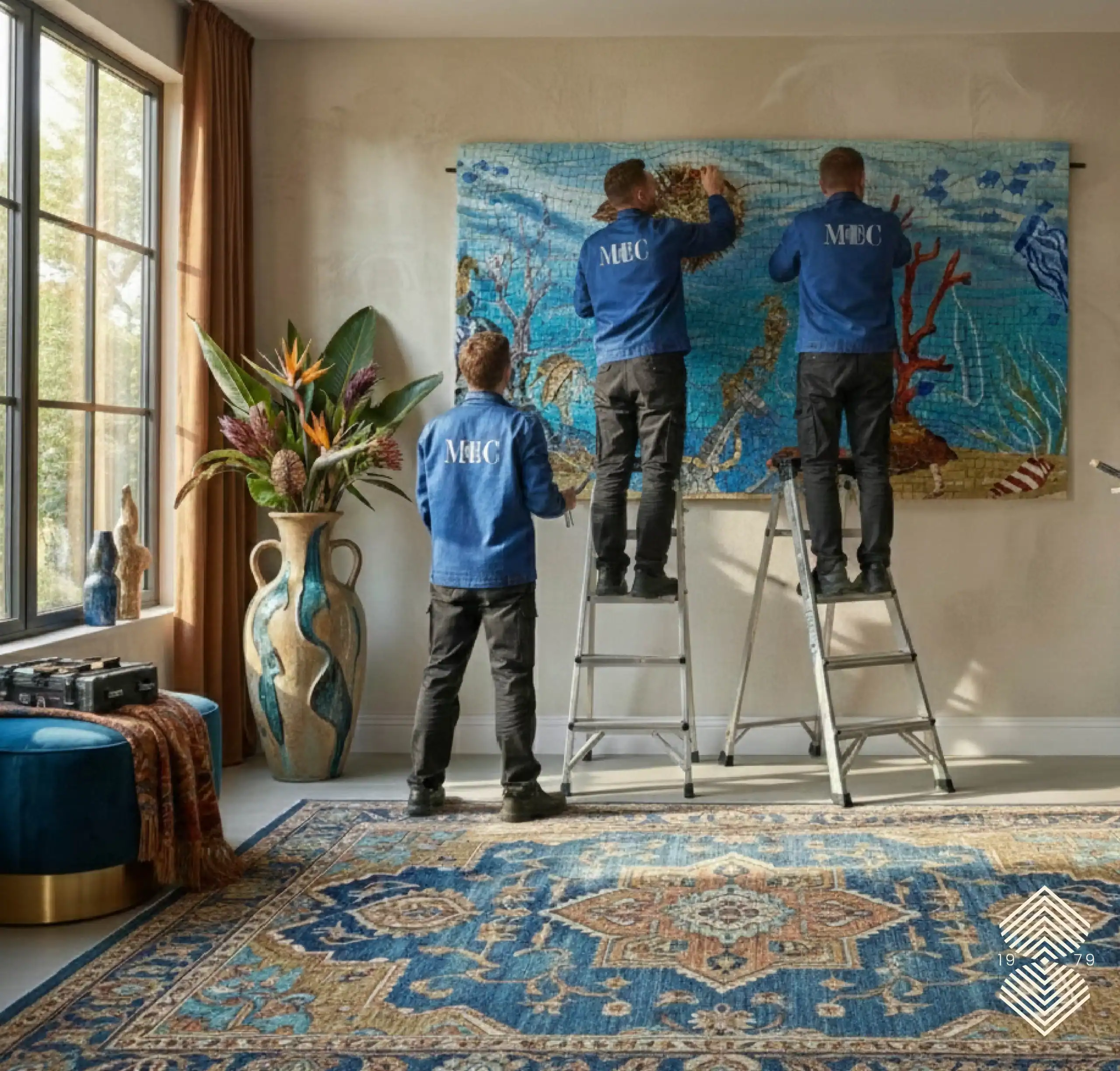 After that, our artists hand-cut and shaped individual tiles to match the curves and details of each marine creature. This is where the mosaic truly gained its character. Finally, we assembled the artwork in modular sections, which helped us maintain accuracy and made the installation process smooth and fast.