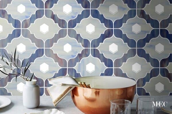 The Aleah mosaic features repeating motifs, creating a sense of rhythm and continuity. The stylized quatrefoil shapes are arranged in a grid-like pattern, ensuring seamless integration and a visually cohesive design. The precise cuts achieved through waterjet technology allow for tight grout lines and a smooth, uninterrupted surface, enhancing the overall elegance of the mosaic.