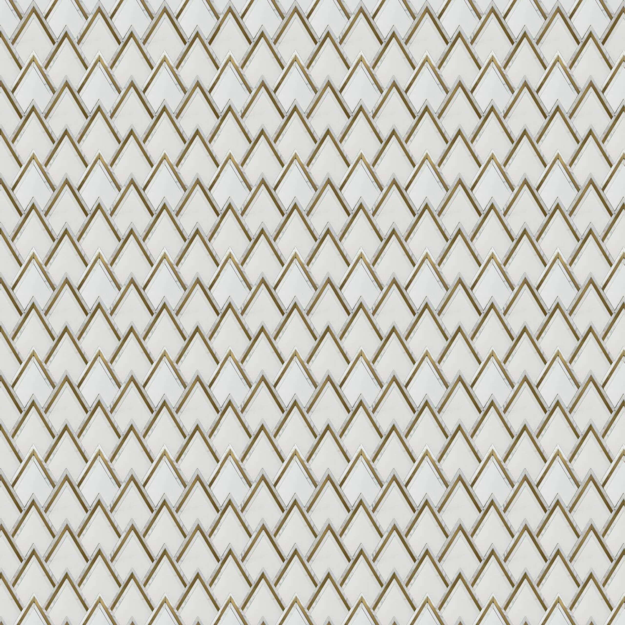 The Golden Chevron Marble Mosaic captures a perfect blend of precision and elegance. Each tile is meticulously crafted in a layered chevron pattern featuring polished white marble with delicate grey veining, outlined in fine gold accents. The repeating V-shaped design adds rhythm and texture, creating an eye-catching sense of movement that draws the eye upward — ideal for adding height and sophistication to walls or backsplashes. Its luminous palette makes it a luxurious choice for modern and classic interiors alike.