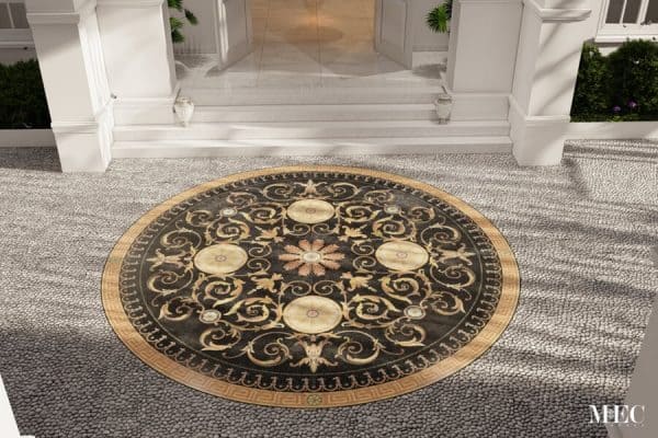 The designs for all the rugs & medallions from MEC’s Lacuna collection have been hand-sketched, colored and shaded from scratch check Blaise Marble Mosaic Fountain Medallion.