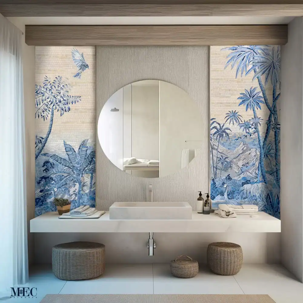 Unique tropical-themed wall mosaic mural for bathrooms.