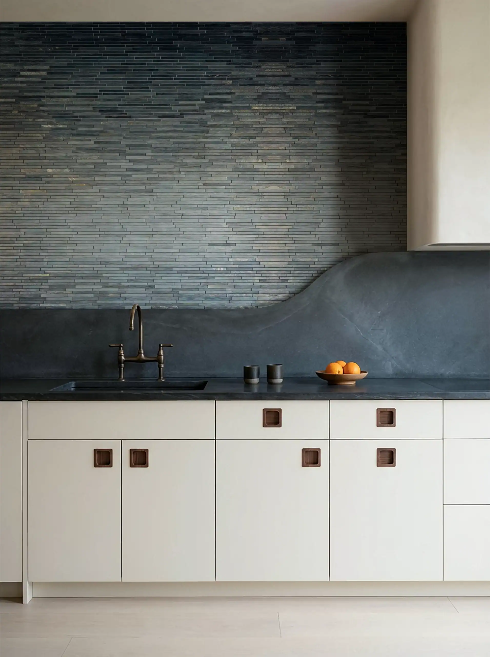 Craftsmanship & Materials of Charcoal Linear Mosaic Backsplash