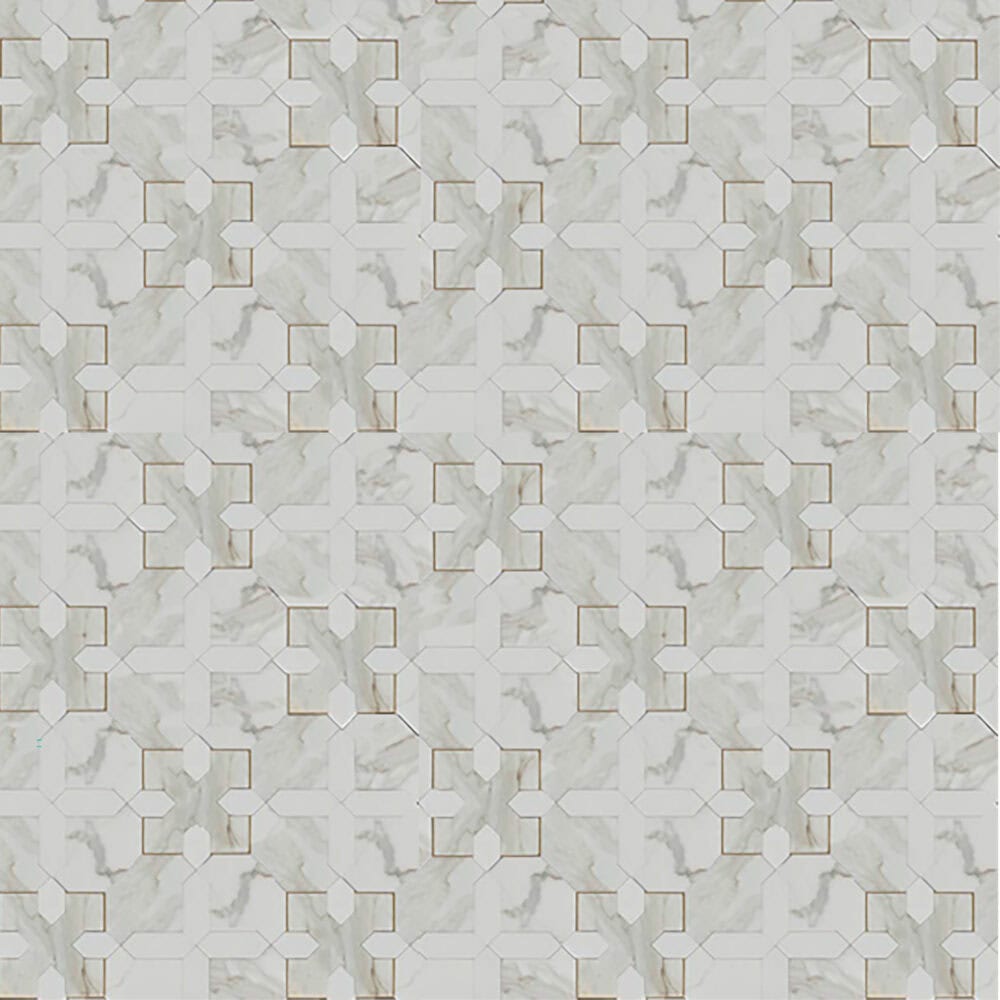 The Cross Marble Mosaic showcases the timeless beauty of natural marble in an intricately structured pattern that exudes balance, precision, and elegance. Featuring soft white and grey veining enhanced by subtle gold accents, this mosaic design combines classical luxury with modern geometry — perfect for interiors seeking understated sophistication.