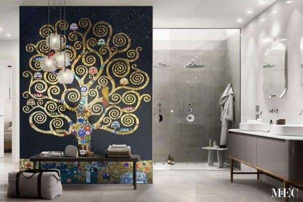 Transform your interior into a realm of artistic splendor with the Curly Tree Mosaic Wall Tile, a breathtaking homage to the iconic “Tree of Life” motif, reminiscent of Gustav Klimt’s masterpieces.