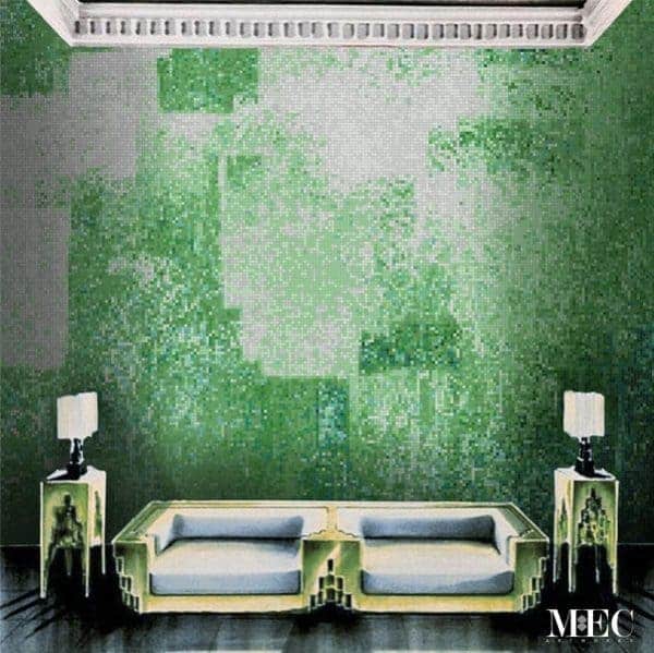 Inspired by raindrops on pavement and geometric abstract art. The Digital Emerald glass mosaic pattern from MEC’s PIXL range is handcrafted using Vertex glass. The modern green theme is perfect for any space, especially modern interiors and walls.