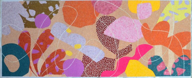 Small Square Tiles: The artwork is composed of many small, square tiles, creating the mosaic texture.