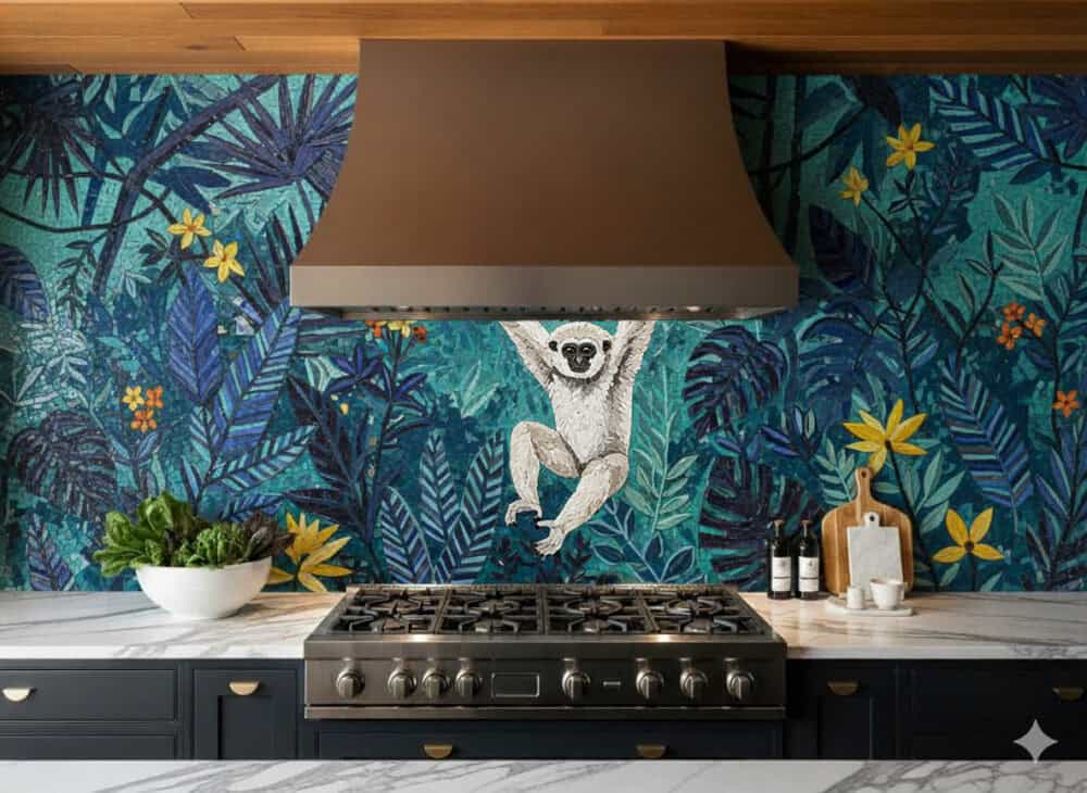 The Jungle Spirit Mosaic is more than decoration—it is an artwork infused with nature’s vitality and playful charm. It transforms kitchens into immersive environments where luxury meets creativity. With its lush foliage, exotic flowers, and spirited gibbon, it invites joy, energy, and storytelling into your space.