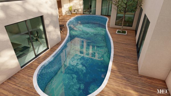 Do you love the ocean but cannot be there as often as you would like? Bring the ocean to your backyard with glass mosaic pool tile art. Clad your pool floor and walls with exciting abstract custom pool designs of your choice with MEC’s PIXL range. This kidney shaped pool is going to be clad with AddTek created abstract mosaic from MEC’s PIXL collection.