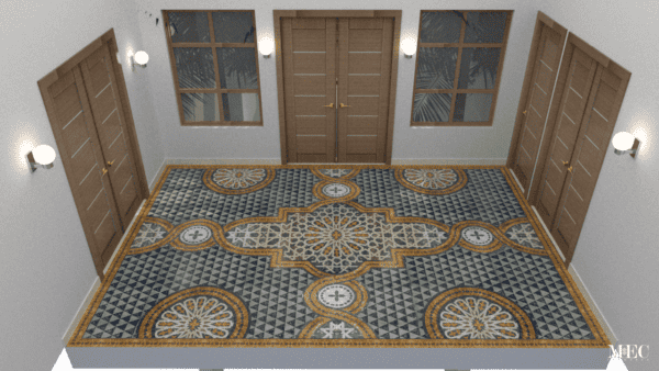 Deeply rooted in Moroccan and Andalusian artistry, this mosaic is a symphony of symmetry, color balance, and spiritual beauty, ideal for palatial interiors, luxury hotels, cultural centers, and grand entryways seeking a statement of heritage and opulence.