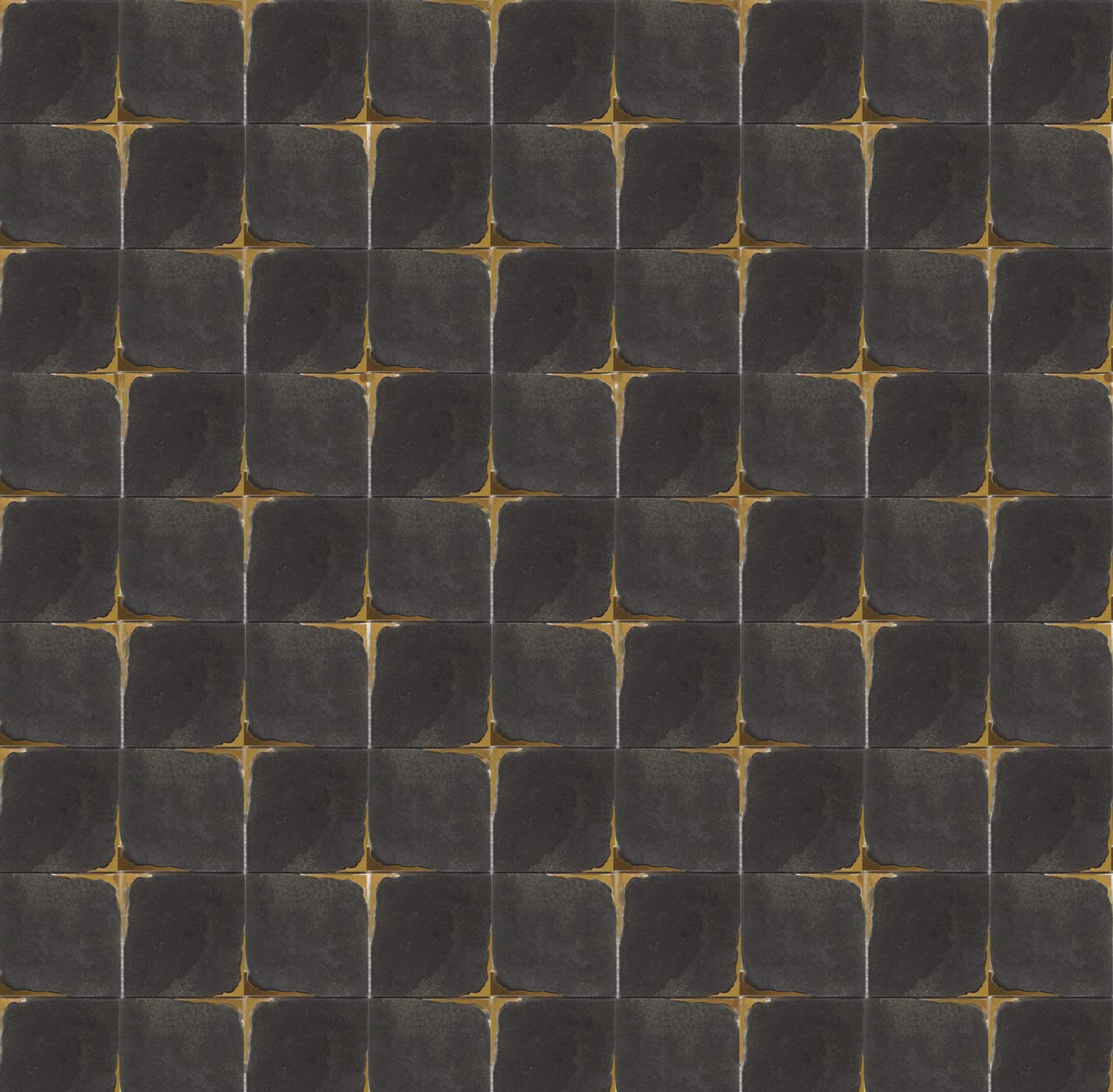 Striking Contrast: The rich black marble forms a bold canvas against luminous gold joints, highlighting each tile’s geometry.