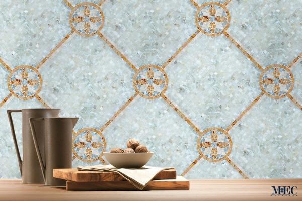 Small Mosaic Components: The fine mosaic detailing within the medallions and grid lines creates a highly refined and intricate texture.