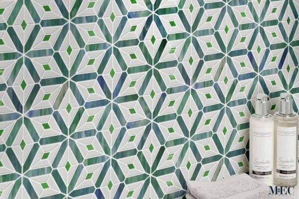 An elegant rhombus diamond pattern made with Jade Glass. Quadri from MECs Lavand range is perfect for just about any space.