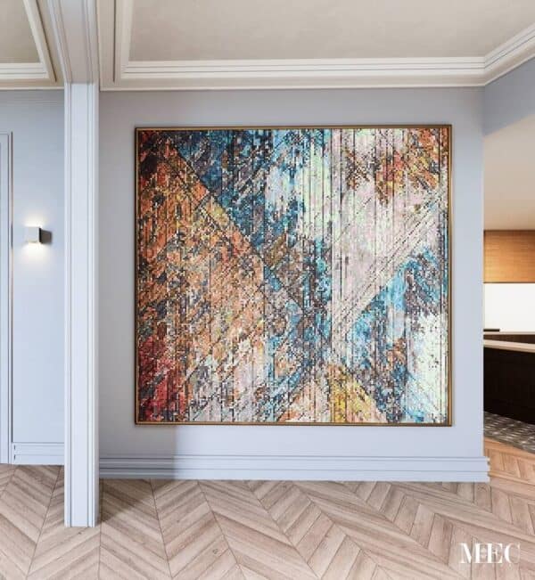 What’s better than an abstract painting to create a focal point? A one-of-a-kind custom made abstract art that is made up of a thousand little glistening tiles, of course. Abstract art transformed into a mosaic tile PIXL pattern with MEC’s AddTek system.