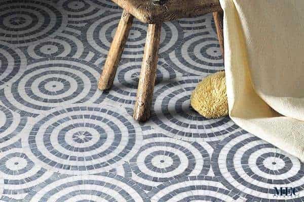 In terms of pattern detailing, the Ulan mosaic uses meticulously cut marble tesserae to form perfect arcs and rings. The seamless transitions between tiles and the high level of precision in alignment underscore the expert craftsmanship involved. The repeating circular forms not only add a sense of harmony and unity but also serve to draw the eye naturally across the space, making the room appear larger and more inviting.