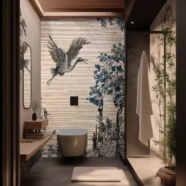 Nature-Inspired Mosaic Artwork with Tropical Theme